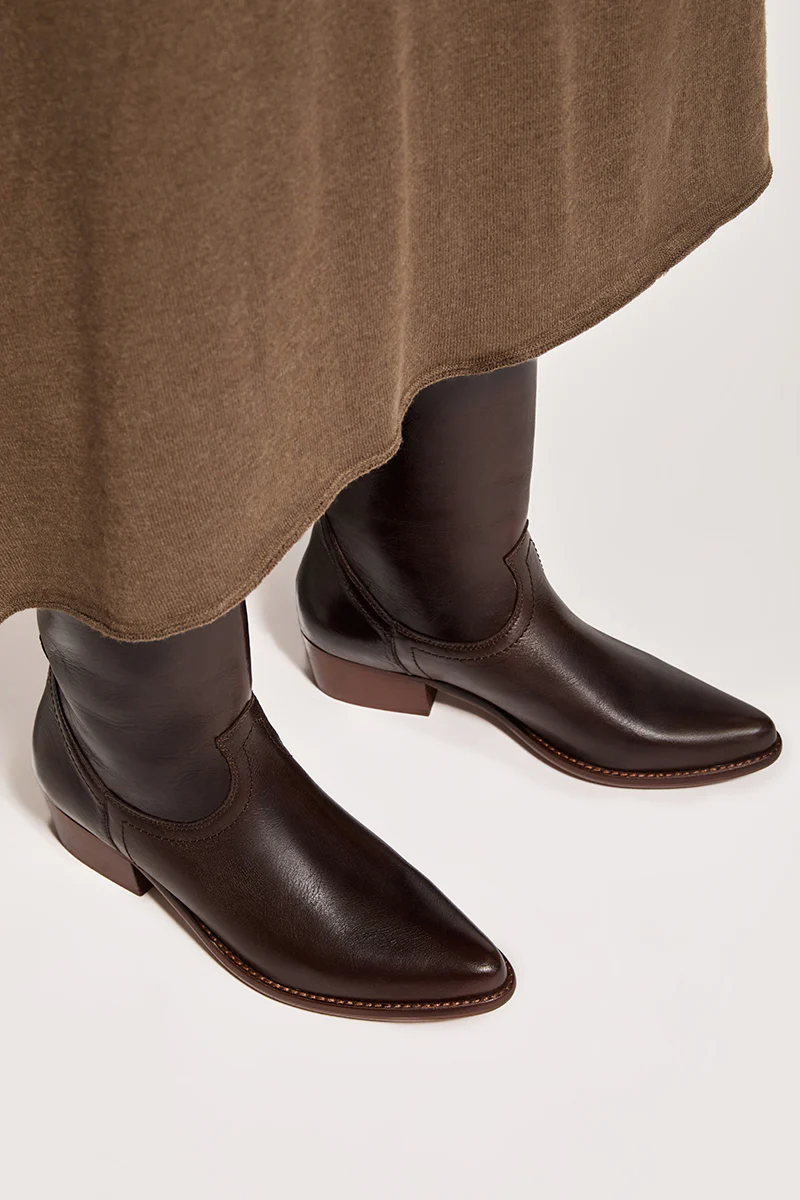 Bota cowboy clásica y atemporal terminada en punta con tacón angulado.